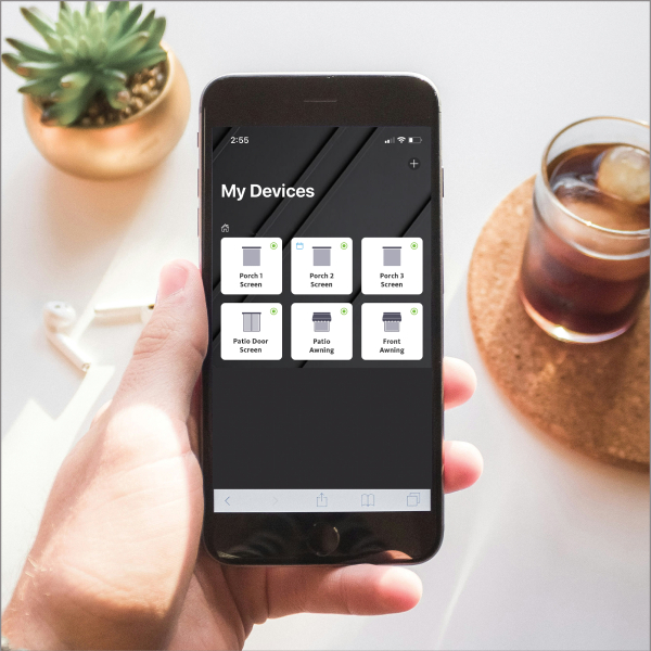 Operate multiple awnings with a hand-held remote, smartphone, or a single voice command through a home automation system.