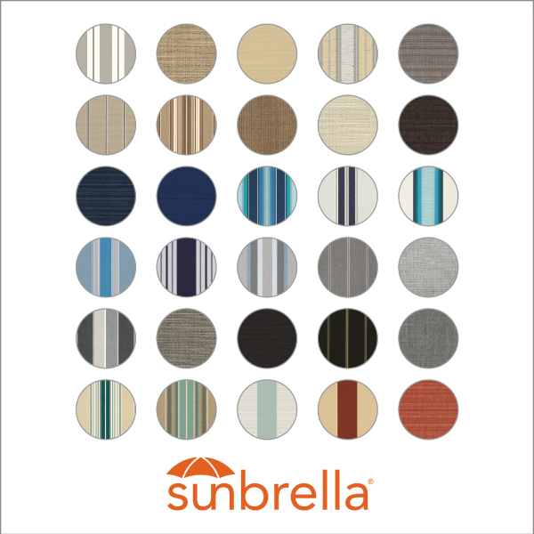 Choose from 30 in-stock Sunbrella® fabrics or over 300 custom selections. These premium fabrics provide exceptional UV protection and comply with the highest low-emission standards.