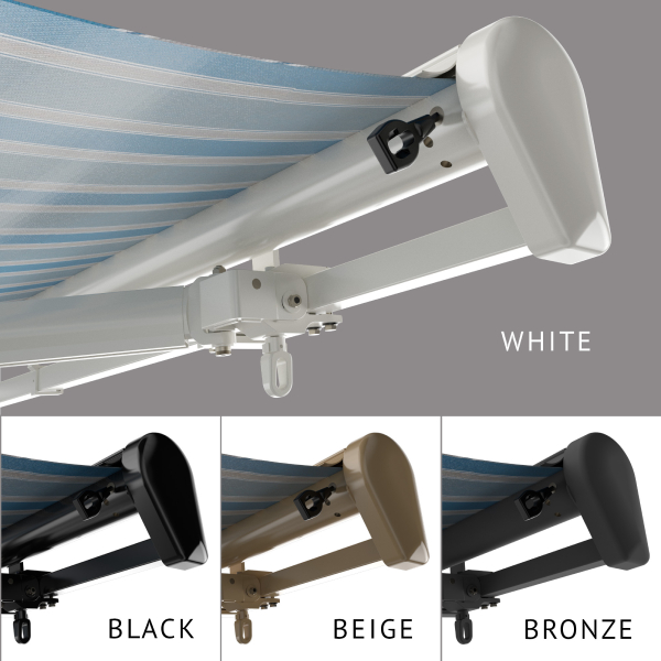 Shade Sense Outdoor awnings feature anti-corrosion integrated cassette housing that protects the fabric from weather damage, maximizing longevity.